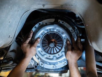 Replace Clutch, Pressure plate and throwout bearing. also rear seal when necessary (Hourly rates apply)